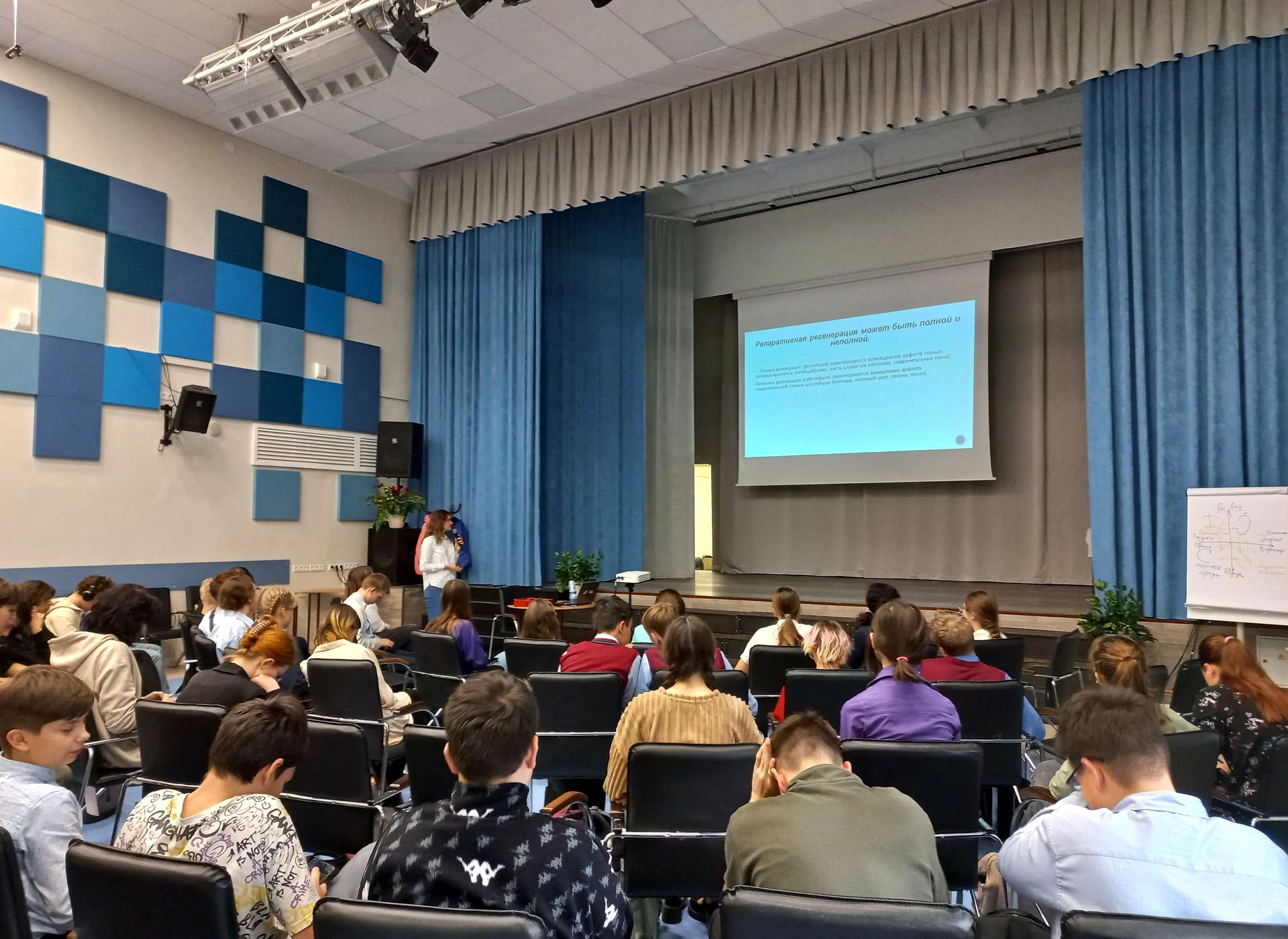 Тема лекции вызвала интерес и у школьников, и у учителей. Слушателей лекции интересовало будущее медицины и роль в нем терапии с помощью стволовых клеток.