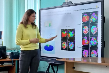 Руководитель лаборатории экспериментальной и клинической фармакологии. К. б. н. Наталья Анатольевна Бондаренко в лекции на тему «Стволовые клетки и регенеративная медицина» поделилась данными об актуальных медицинских исследованиях, которые проводят на базе лаборатории клеточных технологий НИИКЭЛ. Наталья Анатольевна рассказала школьникам Бердска и Академгородка о то, что такое стволовые клетки, какие их виды существуют и зачем они нужны человеку. Говоря о применении стволовых клеток в медицине, Наталья Анатольевна рассказала об использовании стволовых клеток костного мозга для восстановления миокарда сердца у человека (совместный проект НИИКЭЛ и НМИЦ им. ак. Е.Н. Мешалкина). Также ученый привела пример разработки клеточной технологии для заживления кожных ран при сахарном диабете и рассказала об экспериментальной терапии модифицированными мезенхимальнымистволовымиклеткамипри ишемии нижних конечностей.