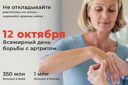 Ежегодно 12 октября отмечается Всемирный день борьбы с артритом. Таким образом врачи и ученые хотят привлечь внимание людей к серьезным заболеваниям, залог успешного лечения которых – ранняя диагностика.