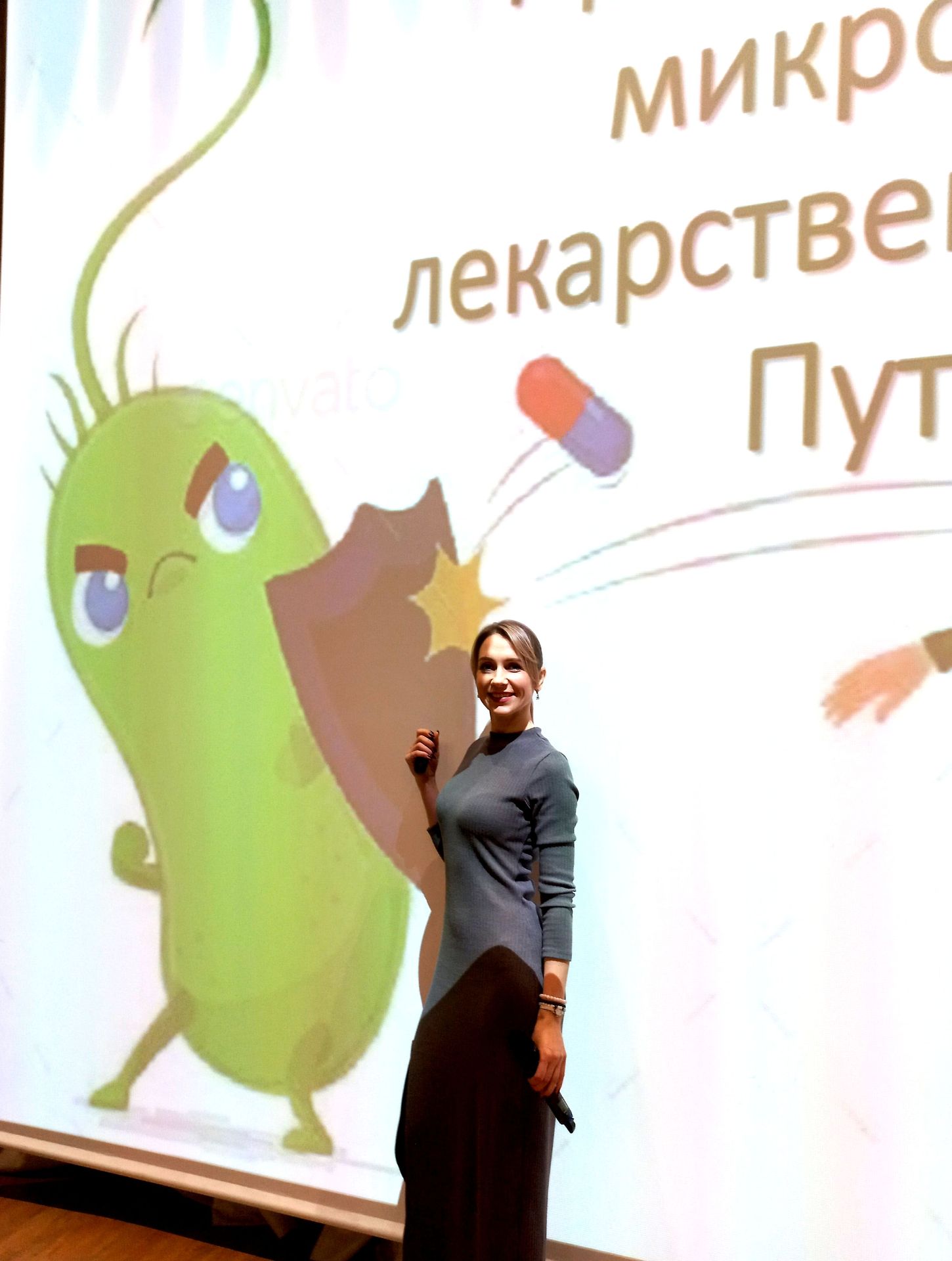 Младший научный сотрудник НИИКЭЛЕлена Бондарева21 февралярассказала учащимся естественно-научных классов Лицея №130 о проблеме устойчивости микроорганизмов к лекарственным препаратам и путях решения этой проблемы, которые ищут ученые. В качестве примера разработки, способной повлиять на решение проблемы антибиотикорезистентности, ученый назвала противомикробный пептидомиметик.Принцип его действия состоит в том, что он налипает на мембрану бактерии и приводит к ее гибели. Работа над проектом ведется в молодежной лаборатории экспериментальной и клинической фармакологии НИИКЭЛ.