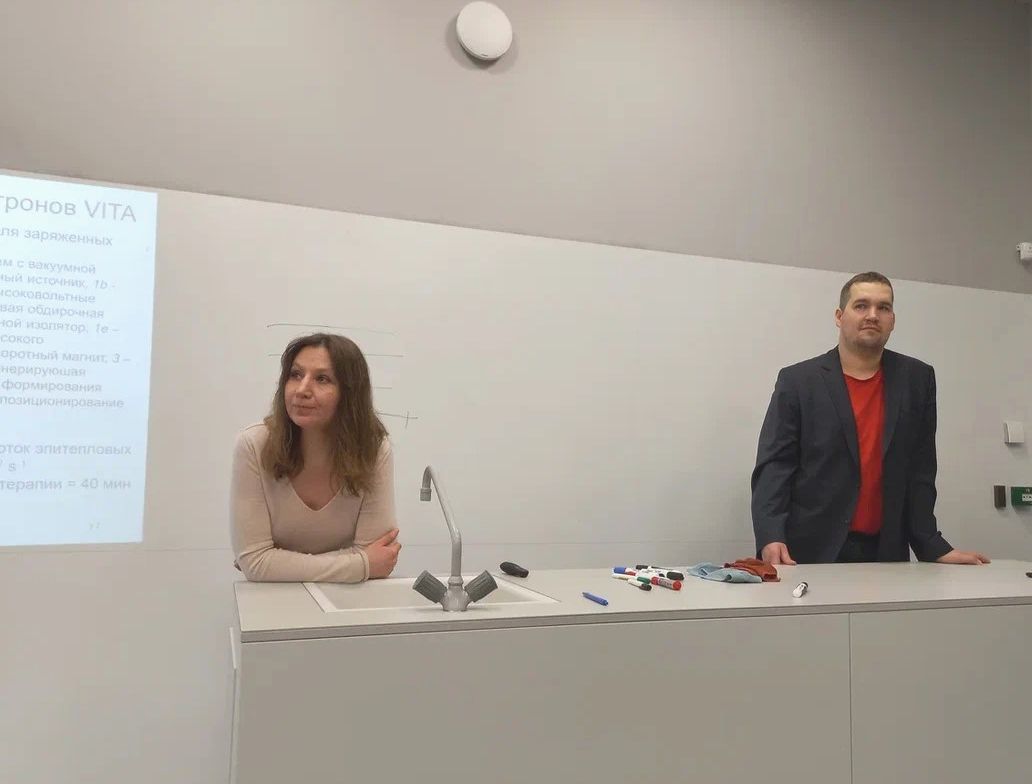10 февраля в СУНЦ НГУ прошла лекция о нейтронзахватной терапии онкологических заболеваний. О новых горизонтах, которые нейтронзахватная терапия открывает для онкорадиологии, рассказали старший научный сотрудник НИИКЭЛ – филиал ИЦиГ СО РАН, к. м. н. Юлия Таскаева, младший научный сотрудник НИИКЭЛ– филиал ИЦиГ СО РАН, к. м. н. Анна Касатова и старший научный сотрудник ИЯФ СО РАН, к.ф-м.н. Дмитрий Касатов. Учащиеся СУНЦ НГУ узнали, как работает бор-нейтронозахватная терапия (БНЗТ) - разновидность лучевой терапии, основанная на высокой способности нерадиоактивного ядра бор-10 поглощать тепловой нейтрон. Сотрудники научных институтов рассказали о физических основах БНЗТ, уникальном ускорительном источнике нейтронов VITA, который разработан в ИЯФ СО РАН. Также ученые продемонстрировали первые результаты терапии домашних животных с помощью БНЗТ в России и поделились планами дальнейшего развития проекта. Работу над проектом совместно ведут сотрудники НИИКЭЛ и ИЯФ СО РАН.